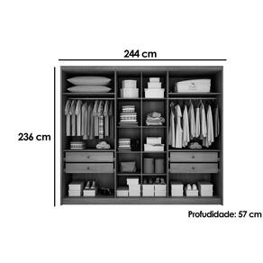 Dimensões(Cm): Comnto(Profundidade): 57cm x Largura: 244cm x Altura: 236cm