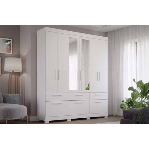 Guarda Roupa Casal 6 Portas e 5 Gavetas c/ Espelho Porto Branco - Panan Marca: Panan