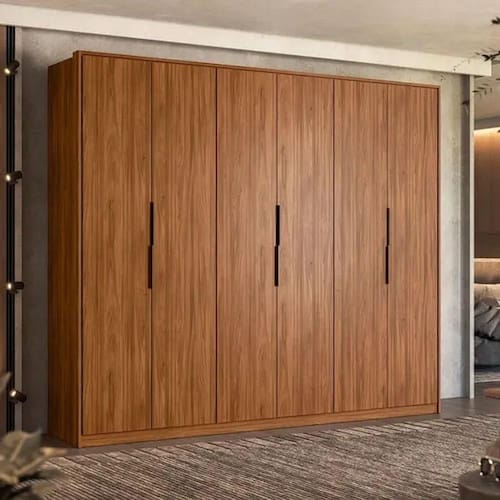 O Guarda-Roupa Casal Atrice tem estrutura em MDP e revestimento em pintura UV. Gavetas internas com corrediças telescópicas e puxadores metálicos. Cabideiros metálicos. Portas de giro com dobradiças metálicas e puxadores metálicos.