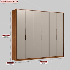 Material: MDP | Cor: Amêndola Touch | Guarda Roupa Altura x Largura x Profundidade: 2,30 x 2,67 x 0,55 | Material do Guarda Roupa: MDP | Quantidade de Portas Guarda Roupa: 6 | Quantidade de Gavetas Guarda Roupa: 6 | Cômodo Indicado: Quarto | Possui Prateleira: Sim | Possui Gaveta: Sim | Tipo da Corrediça da Gaveta do Guarda Roupa: Telescópicas | Tipo de Porta do Guarda Roupa: Bater | Possui pés: Não | Possui Espelho: Não | Quantidade de espelhos: 0 | Instruções/Cuidados: Evite contato com líquidos. Nada de lavar os móveis. Móveis não gostam de umidade. Não deixe o móvel exposto ao sol. Os acessórios também precisam de limpeza. | Material para Filtro: MDP | Quantidade de Volumes: 6 | Peso Bruto: 222 | Altura do Produto (cm): 230 | Largura do Produto (cm): 267 | Comprimento do Produto (cm): 55 | Nome do Simples no Fornecedor: Atrice | Garantia do Fabricante: 90 dias | Produto precisa de Montagem?: Sim, a montagem é simples mas sugerimos a contratação de algum profissional experiente de sua preferência | Material da Estrutura: MDP | Necessita Fixação na Parede: Não | Conteúdo Embalagem: Guarda Roupa Casal | Origem: Nacional | Estado de Origem: Paraná | Peso Bruto (volume 01): 38 Kg | Comprimento x Largura x Altura (volume 01): 2,29 x 0,56 x 0,05 | Peso Bruto (volume 02): 43 Kg | Comprimento x Largura x Altura (volume 02): 2,19 x 0,56 x 0,06 | Peso Bruto (volume 03): 39 Kg | Comprimento x Largura x Altura (volume 03): 2,66 x 0,56 x 0,05 | Peso Bruto (volume 04): 45 Kg | Comprimento x Largura x Altura (volume 04): 0,88 x 0,56 x 0,18 | Peso Bruto (volume 05): 27 Kg | Comprimento x Largura x Altura (volume 05): 2,21 x 0,46 x 0,05 | Peso Bruto (volume 06): 27 Kg | Comprimento x Largura x Altura (volume 06): 2,21 x 0,46 x 0,05 Cor: Nogueira/Nude