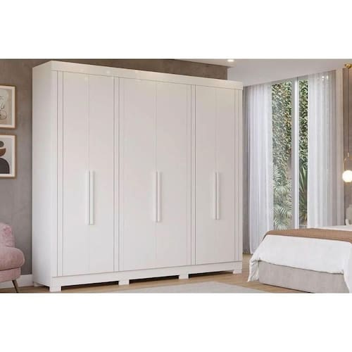 Tipo de Porta do Guarda-Roupa - Portas de Bater Material das Portas - Portas em MDF Tipo de Dobradiças - Dobradiça de Pressão Quantidade de Portas - 6 Portas de Abrir Material das Gavetas - Gavetas em MDF Tipo de Corrediça - c/ Corrediças Telescópicas Quantidade de Gavetas - 6 Gavetas Tipo dos Pés - Pés em ABS Quantidade de Pés - 8 pés Material das Prateleiras - Prateleiras em MDF Quantidade de Prateleiras - 6