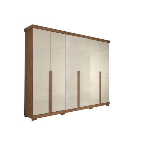 Guarda Roupa Casal 6 Portas e 6 Gavetas c/ Pés Guarapari Avelã/Off White - Panan