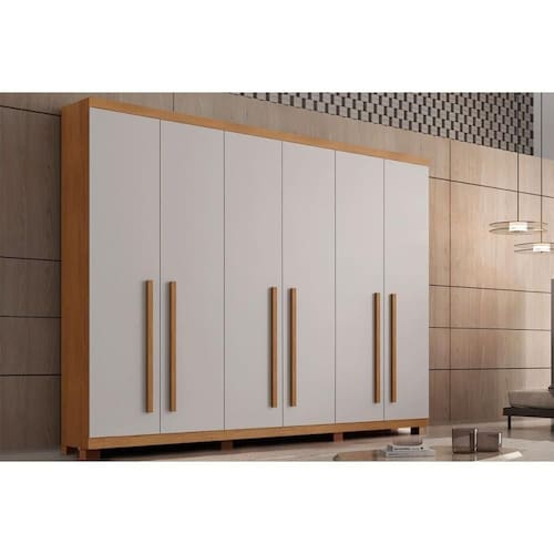 Guarda Roupa Casal 6 Portas e 6 Gavetas c/ Pés Pernambuco Naturale/Off White - Rufato