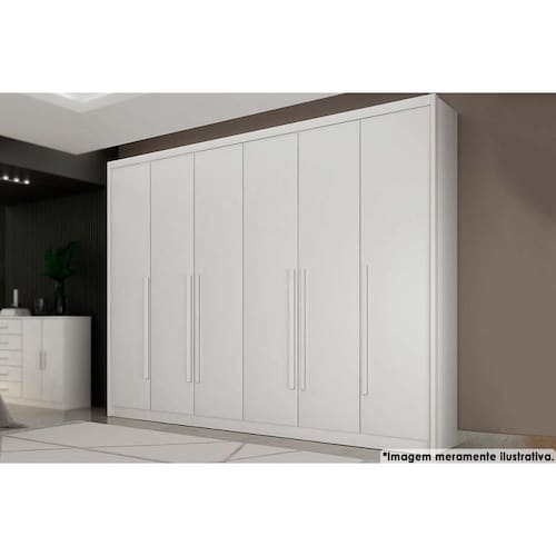 Tipo de Cabideiro - Aéreo Material dos Cabideiros - Cabideira Metálico Tipo de Porta do Guarda-Roupa - Portas de Bater Material das Portas - Portas em MDF Tipo de Dobradiças - Dobradiças Metálicas Diferenciais das Portas - Portas Ripadas Quantidade de Portas - 6 Portas de Abrir Material das Gavetas - Gavetas em MDF Tipo de Corrediça - c/ Corrediças Telescópicas Quantidade de Gavetas - 8 Gavetas Material das Prateleiras - Prateleiras em MDF Quantidade de Prateleiras - 10