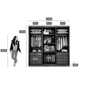 Dimensões(Cm): Comprimento(Profundidade): 57cm x Largura: 211cm x Altura: 236cm