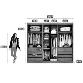 Dimensões(Cm): Comprimento(Profundidade): 56,5cm x Largura: 243,8cm x Altura: 236,4cm