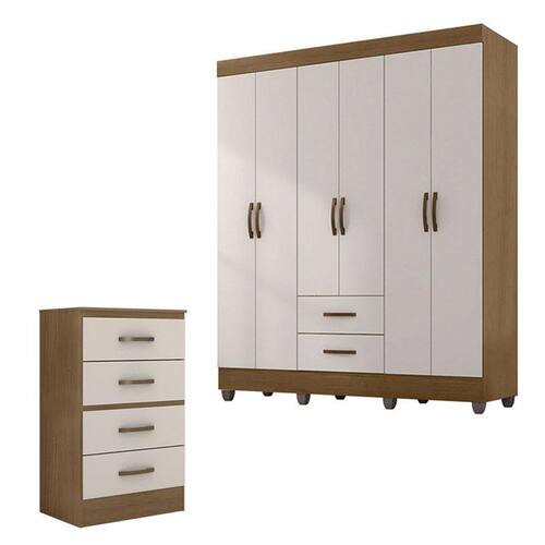 Guarda Roupa Casal 6 Portas e Cômoda 4 Gavetas Lite Nature Off White – Móveis Leão
