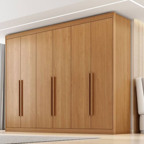 O Guarda Roupa Casal 6 Portas em MDF Colossal Zanzini combina com organização e sofisticação em um só móvel! O Guarda Roupa é fabricado 100 em MDF, garantindo durabilidade e um acabamento de alto padrão. Com 6 portas, dobradiças metálicas de 35mm com pistão e 6 gavetas com corrediças telescópicas, oferece fechamento suave e seguro. Destaque para as primeiras gavetas com colmeia e chave. Possui ainda calceiro, 3 cabideiros e 5 prateleiras, além de molduras laterais de 25mm e acabamento interno igual ao externo. Ideal para quem busca funcionalidade sem abrir mão do estilo.