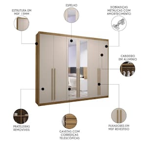 Com o Guarda Roupa Casal 6 Portas 3 Gavetas com Espelho 276cm Dubai Majestic Nature/Fendi, da Vila Rica, você terá um espaço sofisticado e elegante para organizar suas roupas e acessórios, além de agregar um toque de sofisticação ao quarto de casal.