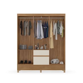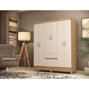 Produzido em MDP com acabamento em pintura UV, o móvel possui estrutura adequada para ambientes residenciais. Conta com cabideiros em madeira revestida, gavetas com corrediças metálicas e portas com dobradiças metálicas, oferecendo estabilidade no abrir e fechar.