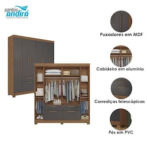 Guarda Roupa Casal 6 portas Guarapuava Jatobá Grafite - Santos Andirá