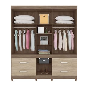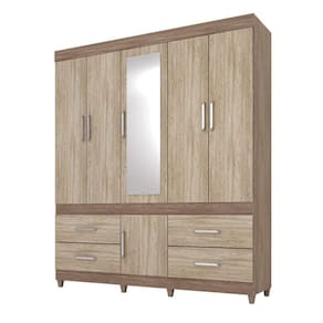 Guarda Roupa Casal 6 Portas Guarujá C/ Espelho 64720 Nogal / Vanilla Touch Demóbile