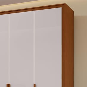São 8 gavetas, maleiros, espaço para roupas longas e espaço para sapatos. Sua moldura com design moderno traz charme, resistência e durabilidade. As dobradiças metálicas de 35mm garantem maior resistência e o distanciador de gavetas em MDF, dão a elas maior durabilidade. Ele acompanha um espelho individual em uma das portas com porta-objetos para guardar acessórios.