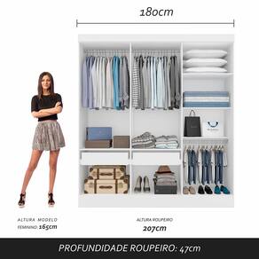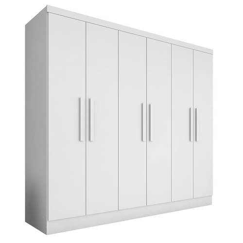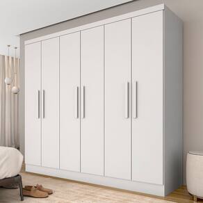 O Guarda Roupa Casal 6 Portas Mariah exibe um design moderno e funcional, uma combinação perfeita de funcionalidade e estilo para organizar e embelezar o espaço do seu quarto.Detalhes Técnicos- Montado: A: 207cm | L: 180cm | P: 47cm- 8 Divisões internas- 6 Portas de bater- 6 Puxadores- 4 Prateleiras- 2 Gavetas- 2 Cabideiros- Gavetas e Prateleiras suportam até 5kgMateriais- MDP- Dobradiças e Corrediças metálicas- Puxadores em madeira- Cabideiros em alumínio- Revestimento: FF Fosco- Tonalidade: BrancoConteúdo da Embalagem- 01 Guarda Roupa- Manual de Montagem- Acessórios para MontagemObservações Importantes- As imagens ambientadas são meramente ilustrativas e podem apresentar itens que não incorporam o produto;- Todos os nossos produtos são novos, acompanham documento fiscal e possuem garantia de 3 meses, essa garantia cobre somente defeitos de fabricação;- A entrega só será efetuada no endereço do CEP, caso o endereço seja diferente do CEP informado no pedido, a entrega terá cobrança adicional e o comprador arcará com as despesas;- Não realizamos entregas para zonas rurais, via caminhos fluviais e distritos, por isso não aceitamos CEP GERAL da região;- Não é possível realizar o agendamento de entrega do produto, é necessário que acompanhe o rastreio de seu pedido para saber a previsão de entrega;- As entregas somente serão realizadas para um responsável maior de idade (+18);- Enviamos para diversos estados, sendo assim nossas entregas são realizadas por transportadoras parceiras de nossa empresa. Confira as dimensões antes da compra e certifique-se de que o produto passará por elevadores, portas e corredores já que nossa entrega não inclui a subida de lances de escada, transporte por elevador e o lançamento de produtos, em caso de condomínios residenciais a entrega é feita somente até a portaria. Todas as entregas são realizadas em dias e horários comerciais;- Ao receber os seus produtos observe se a embalagem se encontra em perfeitas condições. Se você adquiriu algum móvel, confira atentamente a quantidade de volumes e o aspecto físico das embalagens. Confira também se a cor do móvel está de acordo com o seu pedido;- O prazo de cancelamento por arrependimento é de até 7 dias corridos a contar da data de recebimento;- Os produtos e assistências são enviados DESMONTADOS, MONTAGENS E DESMONTAGENS recomendamos sempre a contratação de um montador profissional e é válido lembrar que o custo desses serviços é por conta do comprador;- Objetos decorativos que aparecem na foto não acompanham o produto;- Evitar a exposição direta à luz solar e à umidade;- Para limpeza, limpar com pano macio e seco, não utilizar qualquer outro tipo de produtos químicos;- As cores do produto podem variar de acordo com o monitor, a iluminação do ambiente ou sua percepção visual.