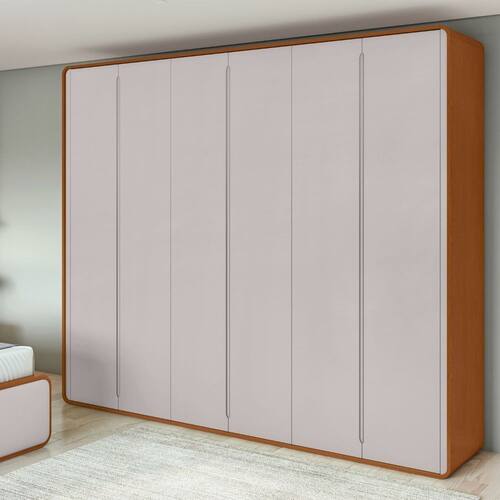 Guarda Roupa Casal 6 Portas MDF Loop Lopas. Este guarda-roupa oferece um design elegante e funcional, combinado com materiais de alta qualidade e características que garantem durabilidade no uso diário. Sua estrutura principal tem 15mm de espessura e suas laterais são feitas de material maciço com 18mm de espessura, proporcionando segurança e um acabamento suave possui cantos arredondados. Com puxadores possuindo design com cava, proporcionando um acabamento elegante em P.U. -Poliuretano-.