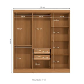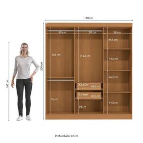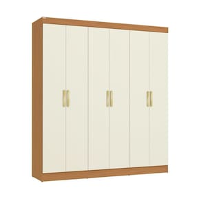 Aposte no Roupeiro R590 da Kappesberg. Com seis portas e ideal para um quarto de solteiro, são 2m de altura, 1,80m de largura e 47cm de profundidade, todo produzido em chapa MDP de 15mm, o que garante mais robustez e qualidade. Com até sete camadas de pintura, a caixaria é em acabamento touch na cor canela, com a textura dos veios da madeira, enquanto as portas, na cor off white, possuem acabamento fosco. Uma combinação que dará ainda mais destaque e luminosidade ao seu espaço. E na parte interna, ele possui uma ótima divisão de espaço, com nichos de tamanhos diferentes, cabideiros metálicos e duas gavetas com corrediças metálicas para organizar seus itens com praticidade. Acabamento da Prateleira: Pintura UV Escala de Brilho da Prateleira: Fosco Possui Cabideiros: Sim Acabamento da Gaveta: Pintura UV Escala de Brilho da Gaveta: Fosco Possui Organizador de Gaveta: Não Acabamento da Porta: Pintura UV Escala de Brilho da Porta: Fosco Material do Puxador da Porta: MDF Altura dos Pés: cm Ambiente Principal: Quarto codigo_ean: 7900288156389 Complexidade da Montagem: Média: pode ser montado por mais de uma pessoa e/ou necessite de maior conhecimento para montagem Cor: Canela/Off White Cor da Porta: Off White Cor do Produto: Canela/Off White Cor do Puxador: Dourado Escala de Brilho: Fosco Espessura da Estrutura (mm): 12 mm Espessura das Portas (mm): 15 mm Espessura das Prateleiras (mm): 12 mm Espessura do Fundo (mm): 3 mm Espessura do Fundo das Gavetas (mm): 3 mm Gaveta com Chave: Não Itens Inclusos: 1 Guarda-Roupa, Ferragens e Manual de Montagem Linha ou Coleção: Móveis Kappesberg Manual de Montagem e Instalação: https://product-hub-prd.madeiramadeira.com.br/983979/documents/c94eb49d-e950-44d0-ad7f-6d3609f500e62943066544517478510307755.pdf Marca: Kappesberg Material da Gaveta: MDP Material da Porta: MDP Material da Prateleira: MDP Material Principal: MDP modular: Não Necessita Montagem: Sim Origem do Produto: Nacional Peso: 95,77 kg Peso Máximo por Gaveta: 6 kg Peso Máximo por Prateleira: 7 kg Porta Janelada: Não Possui Calceiros: Não Possui Espelho: Não Possui Pés: Não Possui Portas: Sim Possui Prateleiras: Sim Produto Montado: Sim Quantidade de Cabideiros: 03 Cabideiros Quantidade de Gavetas: 02 Gavetas Quantidade de Prateleiras: 05 Prateleiras Recomendações de Uso, Manutenção e Limpeza: Use um pano limpo e ligeiramente umidecido em água ou álcool (recomendamos álcool etílico hidratado). Logo após, seque a superfície com um pano seco e macio. Em grandes superfícies limpe pequenas áreas de cada vez, trabalhando de baixo para cima. Sistema de Montagem: Parafusos, Cavilhas e Minifix Tipo de Corrediça da Gaveta: Metálica Telescópica Tipo de Dobradiça/Corrediça da Porta: Metálica Tipo de Gaveta: Interna Tipo de Guarda-Roupa: Casal Tipo de Puxador da Gaveta: Não Possui Tipo de Puxador da Porta: Externo