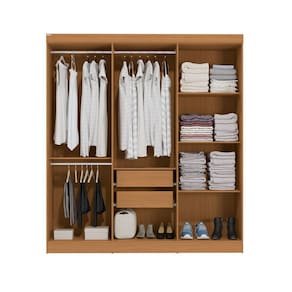 Aposte no Roupeiro R590 da Kappesberg. Com seis portas e ideal para um quarto de solteiro, são 2m de altura, 1,80m de largura e 47cm de profundidade, todo produzido em chapa MDP de 15mm, o que garante mais robustez e qualidade. Com até sete camadas de pintura na cor canela e acabamento touch, com a textura dos veios da madeira, ele combina com todos os espaços, remetendo aos tons da natureza. E na parte interna, ele possui uma ótima divisão de espaço, com nichos de tamanhos diferentes, cabideiros metálicos e duas gavetas com corrediças metálicas para organizar seus itens com praticidade. Acabamento da Prateleira: Pintura UV Escala de Brilho da Prateleira: Fosco Possui Cabideiros: Sim Acabamento da Gaveta: Pintura UV Escala de Brilho da Gaveta: Fosco Possui Organizador de Gaveta: Não Acabamento da Porta: Pintura UV Escala de Brilho da Porta: Fosco Material do Puxador da Porta: MDF Altura dos Pés: cm Ambiente Principal: Quarto codigo_ean: 7900288156372 Complexidade da Montagem: Média: pode ser montado por mais de uma pessoa e/ou necessite de maior conhecimento para montagem Cor: Canela Cor da Porta: Marrom Cor do Produto: Canela Cor do Puxador: Dourado Escala de Brilho: Fosco Espessura da Estrutura (mm): 12 mm Espessura das Portas (mm): 15 mm Espessura das Prateleiras (mm): 12 mm Espessura do Fundo (mm): 3 mm Espessura do Fundo das Gavetas (mm): 3 mm Gaveta com Chave: Não Itens Inclusos: 1 Guarda-Roupa, Ferragens e Manual de Montagem Linha ou Coleção: Móveis Kappesberg Manual de Montagem e Instalação: https://product-hub-prd.madeiramadeira.com.br/983978/documents/4c1bfdfc-8a36-49bc-8ca1-29f3fd90e5c22942782544517478408745601.pdf Marca: Kappesberg Material da Gaveta: MDP Material da Porta: MDP Material da Prateleira: MDP Material Principal: MDP modular: Não Necessita Montagem: Sim Origem do Produto: Nacional Peso: 95,77 kg Peso Máximo por Gaveta: 6 kg Peso Máximo por Prateleira: 7 kg Porta Janelada: Não Possui Calceiros: Não Possui Espelho: Não Possui Pés: Não Possui Portas: Sim Possui Prateleiras: Sim Produto Montado: Sim Quantidade de Cabideiros: 03 Cabideiros Quantidade de Gavetas: 02 Gavetas Quantidade de Prateleiras: 05 Prateleiras Recomendações de Uso, Manutenção e Limpeza: Use um pano limpo e ligeiramente umidecido em água ou álcool (recomendamos álcool etílico hidratado). Logo após, seque a superfície com um pano seco e macio. Em grandes superfícies limpe pequenas áreas de cada vez, trabalhando de baixo para cima. Sistema de Montagem: Parafusos, Cavilhas e Minifix Tipo de Corrediça da Gaveta: Metálica Telescópica Tipo de Dobradiça/Corrediça da Porta: Metálica Tipo de Gaveta: Interna Tipo de Guarda-Roupa: Casal Tipo de Puxador da Gaveta: Não Possui Tipo de Puxador da Porta: Externo
