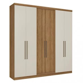 Características: 06 Portas 02 Gavetas internas Corrediças metálicas 03 Prateleiras removíveis 05 Tampos fixos 06 Puxadores 8 Sapatas deslizantes em PVC 02 Cabideiros em alumínio/metálico 02 Maleiros embutidos Material MDP e MDF