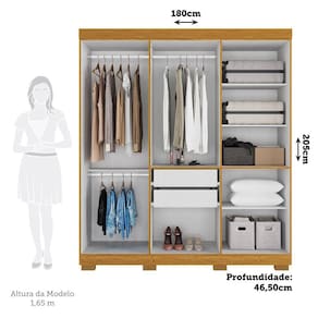 Eleve o padrão do seu quarto com o Guarda Roupas Sakura, desenvolvido com estrutura em MDP para garantir resistência e durabilidade. O acabamento em pintura UV confere um charme especial, enquanto as gavetas deslizam suavemente nas corrediças telescópicas, garantindo praticidade ao dia a dia. O interno conta com cabideiros em alumínio e as prateleiras internas, oferecendo um espaço ideal para manter suas roupas e acessórios organizados. Acabamento da Prateleira: Pintura UV Escala de Brilho da Prateleira: Semi-Brilho Possui Cabideiros: Sim Acabamento da Gaveta: Pintura UV Escala de Brilho da Gaveta: Semi-Brilho Possui Organizador de Gaveta: Não Acabamento da Porta: Pintura UV Escala de Brilho da Porta: Semi-Brilho Material do Puxador da Porta: MDF Altura dos Pés: 5 cm Altura Máxima dos Pés: 5.0000 Ambiente Principal: Quarto codigo_ean: 7909903563823 Complexidade da Montagem: Alta: deve ser montado por um montador especializado Cor: Cinamomo/Off White Cor do Produto: Cinamomo/Off White Cor Interna: Linho Escala de Brilho: Semi-Brilho Gaveta com Chave: Não Guarda-Roupa Suporta Até (kg): 100 kg Informações Complementares: Cabideiros em alumínio. Itens Inclusos: 1 Guarda Roupas, kit ferragens e manual de montagem Linha ou Coleção: Sakura Manual de Montagem e Instalação: https://product-hub-prd.madeiramadeira.com.br/891621/documents/a2d4c434-4608-45c2-ab4f-eded2d367ad71778044roupeiropaolla06pts.pdf Material da Gaveta: MDP Material da Porta: MDP Material da Prateleira: MDP Material dos Pés: Plástico Material Principal: MDP modular: Não Necessita Montagem: Sim Origem do Produto: Nacional Peso: 101 kg Peso Máximo por Gaveta: 7 kg Peso Máximo por Prateleira: 7 kg Possui Calceiros: 01 Possui Espaço para Vestidos Longos: Não Possui Espelho: Não Possui Espelho Interno: Não Possui Ganchos: Não Possui iluminação: Não Possui Nichos: Não Possui Painel de TV: Não Possui Pés: 08 Possui Portas: Sim Possui Prateleiras: Sim Possui Sapateira: Não Produto Montado: Sim Quantidade de Gavetas: 02 Gavetas Quantidade de Prateleiras: 05 Prateleiras Recomendações de Uso, Manutenção e Limpeza: Para limpar não use nenhum tipo de produto, tais como sabão, esponja de aço, álcool e lustra-móveis. Use somente uma flanela seca. Não molhe nem exponha o móvel à umidade ou a luz solar diretamente ou outra forma de calor. Não encoste o móvel na parede. Não o arreste. Se precisar mudar o móvel de lugar, esvazie por completo o móvel, não o arraste, com ajuda de outras pessoas suspenda o móvel de forma segura e o posicione no lugar desejado. Sapatas Niveladoras: Não Sistema de Montagem: Parafusos, Cantoneiras e Minifix. Suporta Até (kg): 100 kg Tipo de Corrediça da Gaveta: Metálica Telescópica Tipo de Dobradiça/Corrediça da Porta: Metálica Tipo de Gaveta: Interna Tipo de Guarda-Roupa: Casal Tipo de Puxador da Gaveta: Não Possui Tipo de Puxador da Porta: Externo
