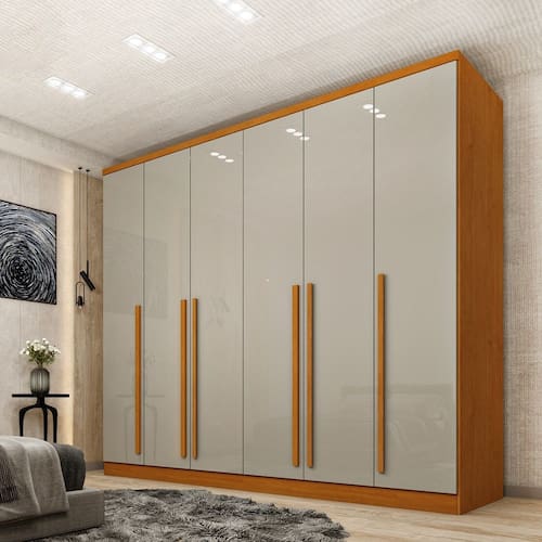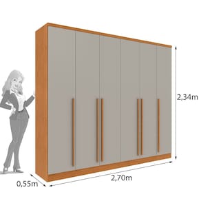 Características: Estrutura em MDP e MDF 6 Portas 8 Gavetas internas Corrediças telescópicas Gavetas com puxadores Cabideiros em alumínio
