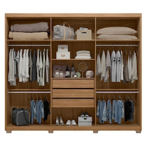 Máxima capacidade de armazenamento tem nome, Guarda-Roupa Sumatra. Os compartimentos internos atendem tranquilamente as necessidade de um casal. Os espaços destinados aos cabideiros são amplos e acomodam camisas, calças, vestidos de médio comprimento e até mesmo casacos de inverno. Para peças que podem ficar dobradas ou produtos de beleza, o Guarda-Roupa Sumatra tem amplas prateleiras. E tem mais! Gavetas internas para as roupas íntimas ou o que você desejar manter armazenado com mais discrição. Muito bom, não é mesmo? E para os pares de sapatos mais utilizados no dia a dia, o Guarda-Roupa Sumatra ainda conta com um espaço especialmente para eles. O grande diferencial do Guarda-Roupa Sumatra é o incrível maleiro para acomodar travesseiros, cobertores, lençóis e fronhas. Para mais durabilidade e praticidade o Guarda-Roupa Sumatra é equipado com jogo de pés em PVC para proteger seu móvel da umidade e facilitar na hora da limpeza do ambiente. Para um experiência completa, o Guarda-Roupa Sumatra tem design com portas inteiriças proporciona a sensação de pé-direito mais alto e um ambiente sofisticado. Com o Guarda-Roupa Sumatra, quarto mais bonito e um novo nível de organização e praticidade no seu dia a dia.