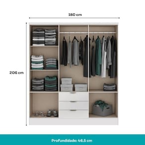 O Guarda-Roupa Troy 1151, com um design moderno e versátil, se torna perfeito para compor qualquer ambiente. Seu amplo espaço interno oferece uma configuração inteligente, com 2 cabideiros em alumínio e 5 prateleiras, proporcionando organização para suas roupas e acessórios. Com 6 portas de giro, o acesso ao guarda-roupa é facilitado, enquanto as 3 gavetas externas com corrediças metálicas garantem praticidade no dia a dia. Fabricado com MDP de 12mm e 15mm, possui acabamento em pintura UV e detalhes texturizados, conferindo um toque de elegância ao produto. O rodapé em MDP de 18mm proporciona maior estruturação e durabilidade. Os puxadores em ABS complementam o visual moderno. Internamente, o acabamento Linho adiciona um charme extra. Renove seu quarto unindo funcionalidade e estilo em um único produto.