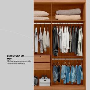 Guarda-roupa com visual sofisticado, materiais com alto padrão de qualidade e incrível capacidade de armazenamento são essenciais para proporcionar um ambiente bonito e organizado. E se você sonha com um móvel assim para o quarto, então vai amar o Guarda-Roupa Venice. O design com portas de giro inteiriças e puxadores com design linear enriquecem a decoração do ambiente e dão a sensação de pé direito mais alto. A incrível interna do Guarda-Roupa Venice, acomoda facilmente em seus quatro cabideiros, vestidos de diferentes comntos, roupas de verão e inverno, calças e o que você desejar armazenar em cabides. E para as roupas íntimas duas gavetas internas. Precisa de mais espaço? O Guarda-Roupa Venice tem amplo maleiro para você armazenar travesseiros, roupas de cama e o cobertor preferido! E tem mais, espaços internos para sapatos de diferentes alturas. Muito bom, não é mesmo? Você vai amar viver essa experiência. Você vai amar o Guarda-Roupa Venice.