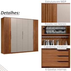 Guarda Roupa Casal 6 PT 6 GAV D66210K, moderno e sofisticado, permite guardar muitas coisas e ainda ter locais separados para o casal. Estrutura em MDP de 12, 15 e 18 mm, e conta com pintura em acabamento UV (Fosco). Composto por 6 portas com dobradiças metálicas e longos puxadores metálicos, as portas laterais com detalhes ripados dão acesso há 6 gavetas internas com corrediças telescópicas e detalhes curvos que dispensam puxadores, além disso, há um cabideiro metálico para roupas de até médio comprimento, um espaço para os sapatos e um maleiro para as roupas de cama, e nas portas centrais, há outro cabideiro metálico para roupas longas, 4 prateleiras ótimas para roupas dobradas ou toalhas, e mais um maleiro. Além de ampla capacidade de armazenamento, foi desenvolvido para oferecer total conforto e comodidade para você. Este móvel chegará na sua casa separado em 6 volumes.