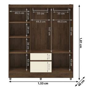 Materiais: Estrutura em MDP de 12mm (fundo em MDF de 3mm), corrediças metálicas, puxadores, dobradiças metálicas.