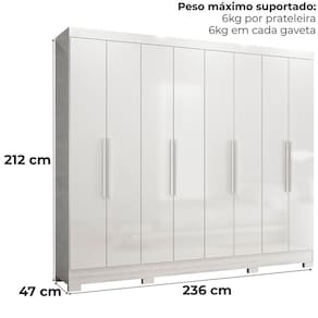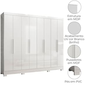 Com design funcional e excelente aproveitamento interno, o Guarda-Roupa Casal Diplomata é a escolha ideal para quem busca organização e estilo. Estrutura em MDP (15/ 12 mm) e acabamento em pintura UV. Composto por portas com dobradiças metálicas, cabideiro interno (alumínio), gavetas com corrediças metálicas e prateleiras. Produto com dupla opção de montagem: pés em PVC ou sapatas plásticas (2 mm) conforme preferência do cliente. Este produto será entregue em 03 volumes.