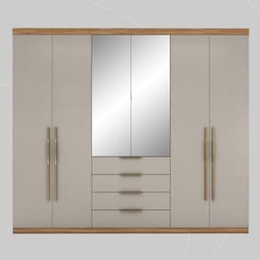 O Guarda-Roupa Casal Giardino é a união perfeita de estilos que proporciona uma conexão com a natureza. A combinação de cores e texturas oferece experiência agradável ao toque e cria ambiente calmo, enquanto os puxadores na cor ouro, com detalhes curvos, adicionam a sensação de aconchego. O Guarda-Roupa Casal Giardino tornará o quarto do casal mais bonito, confortável e funcional. Você vai adorar viver essa experiência. Acabamento da Prateleira: Pintura UV Escala de Brilho da Prateleira: Fosco Possui Cabideiros: Sim Acabamento da Gaveta: Pintura Texturizada UV Escala de Brilho da Gaveta: Fosco Material do Puxador da Gaveta: Plástico Possui Organizador de Gaveta: Não Acabamento da Porta: Pintura Texturizada UV Escala de Brilho da Porta: Fosco Material do Puxador da Porta: Plástico Altura do Espelho: 134,2 cm Ambiente Principal: Quarto codigo_ean: 7909903666173 Complexidade da Montagem: Alta: deve ser montado por um montador especializado Cor: Amêndola Touch/Nude Prime TX Cor do Produto: Amêndola Touch/Nude Prime TX Cor Flex: Não Cor Interna: Amêndola Escala de Brilho: Fosco Espessura do Espelho: 3 mm Fita Integrada: Sim Formato do Espelho: Retangular Gaveta com Chave: Não Guarda-Roupa Suporta Até (kg): 64 kg Itens Inclusos: 1 Guarda-Roupa, Kit Ferragens e Manual de Montagem Largura do Espelho: 43 cm Linha ou Coleção: Linha Giardino Manual de Especificação Técnica: https://product-hub-prd.madeiramadeira.com.br/906139/documents/bebb067c-5ec1-4ca4-8d4c-2f8701589d931930890fichatEcnica64910.pdf Manual de Montagem e Instalação: https://product-hub-prd.madeiramadeira.com.br/906139/documents/3f1e8267-e752-4204-ab87-12d4aa35438430889manualdemontagem64910.pdf Material da Gaveta: MDP Material da Porta: MDP Material da Prateleira: MDP Material Principal: MDP modular: Não Montagem Flex: Não Necessita Montagem: Sim Origem do Produto: Nacional Peso: 178,55 kg Peso Máximo por Gaveta: 3 kg Peso Máximo por Prateleira: 4 kg Possui Calceiros: 01 Possui Espaço para Vestidos Longos: Não Possui Espelho: Sim Possui Espelho Interno: Não Possui Ganchos: Não Possui iluminação: Não Possui Painel de TV: Não Possui Pés: Não Possui Portas: Sim Possui Prateleiras: Sim Possui Sapateira: Não Produto Montado: Sim Quantidade de Espelho: 02 Espelhos com Tamanhos Iguais Quantidade de Gavetas: 04 Gavetas Quantidade de Prateleiras: 04 Prateleiras Recomendações de Uso, Manutenção e Limpeza: Utilizar flanela seca. Sistema de Montagem: Parafusos/Cavilhas Suporta Até (kg): 64 kg Tipo de Corrediça da Gaveta: Metálica Telescópica Tipo de Dobradiça/Corrediça da Porta: Metálica Tipo de Fixação do Espelho: Fita Dupla Face Tipo de Gaveta: Externa Tipo de Guarda-Roupa: Casal Tipo de Puxador da Gaveta: Externo Tipo de Puxador da Porta: Externo