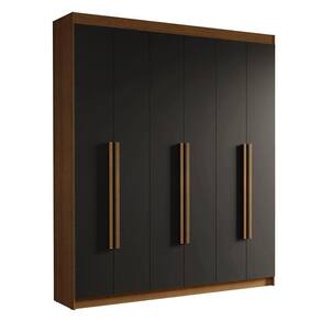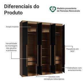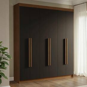 Possui uma pintura de alta resistência, que garante durabilidade e um acabamento impecável por muito mais tempo. A estrutura e os puxadores são em tom amadeirado Rustic e as portas na cor preta, criando um visual sofisticado que se adapta a qualquer estilo de decoração. Os puxadores de 80 cm, fabricados em MDF, são um dos grandes diferenciais, trazendo um design alongado e moderno.