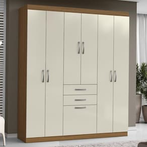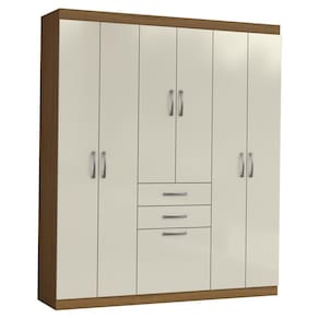 MDP 12 mmGuarda Roupa Casal Cancun, design espaçoso e resistente para transformar seu quarto. Estrutura em MDP de 12 mm e acabamento em Verniz. Possui portas com dobradiças metálicas, gavetas com corrediças telescópicas, amplas prateleiras internas, cabideiro em madeira com revestimento PVC e puxadores em plástico. Este produto será entregue em 2 volumes.