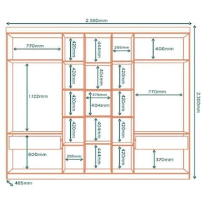 Materiais: Estrutura 100% MDP (chapa de 12mm), Corrediças metálicas, Dobradiças Metálicas, Puxadores em ABS e Cabideiro em Aluminio.