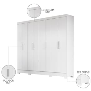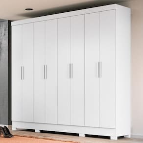 Robusto e imponente, o Guarda Roupa Casal 8 Portas 4 Gavetas 236cm Ágata M07 Branco, da Mpozenato, é a opção perfeita para você que busca um guarda roupa grande e, ao mesmo tempo, com design moderno.