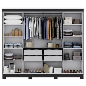 Durabilidade é a palavra para o guarda roupa Paris 8 portas, desenvolvido em material ecologicamente correto, o produto possui 8 portas de abrir com um amplo espaço interno, gavetas internas com corrediças metálicas , varão e calceiro em madeira. Modulação interna versátil para roupas longas. O guarda roupa Paris 8 portas é ideal para quem procura espaço e versatilidade, tornado seu ambiente ainda mais moderno e aconchegante. Acabamento da Prateleira: Pintura Escala de Brilho da Prateleira: Fosco Possui Cabideiros: 02 Acabamento da Gaveta: Pintura Escala de Brilho da Gaveta: Fosco Material do Puxador da Gaveta: Possui Organizador de Gaveta: Não Acabamento da Porta: Pintura Escala de Brilho da Porta: Fosco Material do Puxador da Porta: Plástico Acabamento dos Pés: Acompanha Cama Auxiliar: Acompanha Colchão: Altura da Cama: Altura do Espelho: Altura do Espelho 01: Altura do Espelho 02: Altura do Espelho 03: Altura do Espelho 04: Altura do Espelho 05: Altura do Espelho 06: Altura dos Pés: 0.5 Ambiente Principal: Quarto Cama Auxiliar Acompanha Colchão: Cama Auxiliar Suporta Até (kg): Cama Suporta Até (kg): Complexidade da Montagem: Média: pode ser montado por mais de uma pessoa e/ou necessite de maior conhecimento para montagem Cor: Preto Cor do Produto: Preto Cor Flex: Cor Interna: Cinza Escala de Brilho: Fosco Espessura do Espelho: Fita Integrada: Formato do Espelho: Gaveta com Chave: Não Guarda-Roupa Suporta Até (kg): Informações Complementares: Itens Inclusos: 1 Guarda Roupa, Kit Ferragens e Manual de Montagem. Largura da Cama: Largura do Espelho: Largura do Espelho 01: Largura do Espelho 02: Largura do Espelho 03: Largura do Espelho 04: Largura do Espelho 05: Largura do Espelho 06: Linha ou Coleção: Paris Manual de Especificação Técnica: Manual de Montagem e Instalação: https://cdn2.madeiramadeira.com.br/atributo/maxel/1188629-manual-paris-8-portas.pdf Material da Gaveta: MDP Material da Porta: MDP Material da Prateleira: MDP Material dos Pés: Plástico Material Principal: MDP Montagem Flex: Necessita Montagem: Sim Origem do Produto: Nacional Peso: 133.4 Peso Máximo por Gaveta: 3 Peso Máximo por Prateleira: 6 Possui Calceiros: Não Possui Espaço para Vestidos Longos: Possui Espelho: Não Possui Espelho Interno: Possui Ganchos: Possui iluminação: Possui Painel de TV: Possui Pés: 08 Possui Portas: 08 Possui Prateleiras: 10 Possui Sapateira: Profundida de Cama: Quantidade de Espelho: Recomendações de Uso, Manutenção e Limpeza: Pano limpo e levemente umedecido. Sapatas Niveladoras: Não Sistema de Montagem: Cavilhas, Girofix e Parafusos. Tamanho do Colchão Indicado (L x C): Tamanho do Colchão Indicado Cama Auxiliar: Tipo de Corrediça da Gaveta: Metálica Simples Tipo de Dobradiça/Corrediça da Porta: Metálica Tipo de Estrado: Tipo de Fixação do Espelho: Tipo de Gaveta: Interna Tipo de Guarda-Roupa: Casal Tipo de Madeira Maciça: Tipo de Madeira Maciça da Gaveta: Tipo de Madeira Maciça da Porta: Tipo de Madeira Maciça da Prateleira: Tipo de Madeira Maciça do Puxador da Gaveta: Tipo de Madeira Maciça do Puxador da Porta: Tipo de Madeira Maciça dos Pés: Tipo de Puxador da Gaveta: Não Possui Tipo de Puxador da Porta: Externo