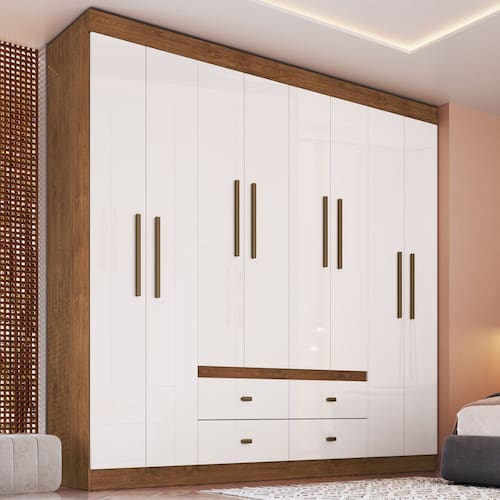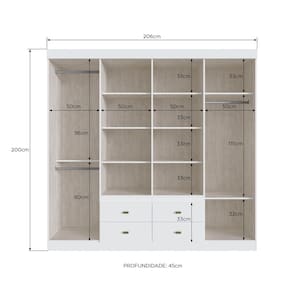 Enorme é a palavra para o guarda roupa Las Vegas 8 portas, desenvolvido todo em MDP, o produto possui 8 portas de abrir com um amplo espaço interno, 4 gavetas com corrediças metálicas slim , cabideiro revestido.