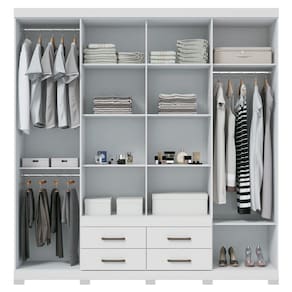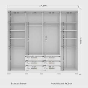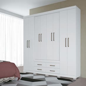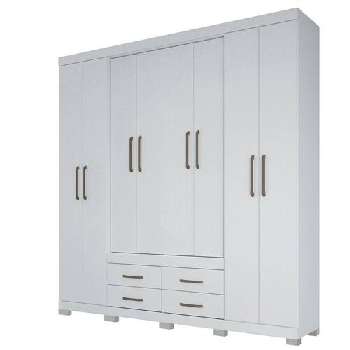 Quando se pensa em organização, às vezes pelo costume atual de móveis compactos e simples, acabamos não lembrando de itens clássicos que fazem toda a diferença. Então, que tal relembrar as características convencionais que são indispensáveis em todo guarda roupa?Bom, o Guarda Roupa Nápoles Branco possui 8 portas e 4 gavetas amplas, ou seja, conta com espaço suficiente para suas roupas, sapatos e acessórios podendo ser organizados da forma que você preferir! Mas não para por aí, esse guarda roupa casal ainda apresenta repartições internas que auxiliam muito no dia a dia, contendo 3 cabideiros e prateleiras que formam nichos. Ah, e vale ressaltar que qualidade é o que esse móvel tem garantido, graças a estrutura em MDP/MDF, pés de madeira com acabamento em verniz, puxadores em ABS e cabideiro em alumínio.Me diz, incrível demais né? Então aproveite e leve esse guarda roupa 8 portas agora mesmo!!Dimensões do ProdutoLargura: 212 cm.Altura: 217 cm.Profundidade: 46,3 cm.Peso: 130,70 Kg.Características do ProdutoMaterial da Estrutura: MDP.Peso Suportado: Gaveta: 5 Kg / Base: 5 Kg / Prateleiras: 5 Kg.Acabamento: Verniz UVEscala de Brilho: Brilhante.Quantidade de Portas: 8 Portas.Possui Espelho: Não.Quantidade de Gavetas: 4 Gavetas.Tipo de Corrediças: Metálicas.Tipo de Puxador: ABS.Possui Cabideiro: Sim.Quantidade de Cabideiros: 3 Cabideiros.Possui Prateleiras: Sim.Quantidade de Prateleiras: 9 Prateleiras.Possui Pés: Sim.Diferenciais:- Design Moderno.- Espaço para roupas longas.- Cofre embutido.- Espaço para sapatos.Sistema de Montagem: Cavilhas / Parafusos / Girofix.Manual de Montagem: Sim.Complexidade da Montagem: Alta.Volumes: 4 Volumes.Garantia do Fabricante: 90 dias contra defeito de fabricação.Montagem: Recomendamos que seja feita por um profissional.Recomendação de Limpeza: Utilize pano levemente úmido.Observações importantes:- Produto para uso residencial em ambiente interno, não devendo ficar exposto diretamente ao sol, calor e umidades excessivas.- Pode haver alguma diferença de tonalidade entre a imagem e o produto real, por conta do tratamento de imagens e a calibração de cores do seu monitor.- As imagens são meramente ilustrativas, não acompanham objetos de decoração e eletrônicos.- Confira o estado da embalagem, não devendo assinar o comprovante em caso de danos.- Não asseguramos, no ato da entrega, por subir escadas/elevadores, pelo transporte por guincho em apartamentos ou montagem, desmontagem e instalações. Eventuais despesas são por conta do comprador.- Confira as dimensões do produto e certifique-se de que passará normalmente por supostos elevadores, portas, escadas e/ou corredores de sua residência.