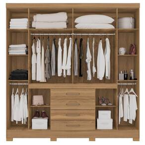 Estamos sempre em busca de novidades para deixar nosso quarto atualizado e moderno, sendo assim o Guarda Roupa New Realce com a sua sofisticação vem agregar na decoração deixando seu dormitório mais lindo.Roupeiro com divisões bem distribuídos oferecendo compartimentos exclusivos para vários pares de sapatos, maleiro espaçoso, 2 prateleiras, 3 gavetas e 2 cabideiros, para facilitar possui 10 portas com abertura convencional, para dar aquele toque especial são os puxadores feitos em plástico.A estrutura feita em MDP dá aquela qualidade e resistência ao móvel, se torna perfeito e impecável para o ambiente de descanso.Só falta você levar para casa! Garanta o seu dando um click!Dimensões do Produto:Largura: 201 cm.Altura: 217cm.Profundidade: 47 cm.Peso: 126,70 Kg.Características dos Produtos:Material da Estrutura: MDP.Peso Suportado: 3hg por gaveta, 3kg por prateleira,10kg base.Acabamento: Pintura UV.Escala de Brilho: Fosco.Possui Pés: Sim.Possui Gaveta: Sim.Quantidade de Gavetas: 4 Gavetas.Tipo de Corrediça: Telescópica.Possui Prateleiras: Sim.Quantidade de Prateleiras: 6 Prateleiras.Possui Portas: Sim.Quantidade de Portas: 8 Portas.Tipo de Portas: Convencional.Possui Cabideiros: Sim.Quantidade de Cabideiros: 4 Cabideiros.Diferenciais:- Design Moderno.- Amplo espaço interno.- Puxadores de plásticos.Sistema de montagem: Parafusos/ Cavilhas/ Pregos.Manual de montagem: Sim.Complexidade da Montagem: Alta.Conteúdo da Embalagem: 1 Roupeiro.Volumes: 3 Volumes.Garantia do fabricante: 90 dias contra defeito de fabricação.Montagem: Aconselhamos que seja feita por um profissional.Recomendação de limpeza: Utilize pano levemente úmido.Observações importantes:- Produto para uso residencial em ambiente interno, não devendo ficar exposto diretamente ao sol, calor e umidades excessivas.- Pode haver alguma diferença de tonalidade entre a imagem e o produto real, por conta do tratamento de imagens e a calibração de cores do seu monitor.- As imagens são meramente ilustrativas, não acompanham objetos de decoração e eletrônicos.- Confira o estado da embalagem, não devendo assinar o comprovante em caso de danos.- Não asseguramos, no ato da entrega, por subir escadas/elevadores, pelo transporte por guincho em apartamentos ou montagem, desmontagem e instalações. Eventuais despesas são por conta do comprador.- Confira as dimensões do produto e certifique-se de que passará normalmente por supostos elevadores, portas, escadas e/ou corredores de sua residência.