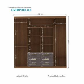 Guarda-roupa Casal 8 Portas 6 Gavetas Liverpool Jatobá/Grafite - Cinza