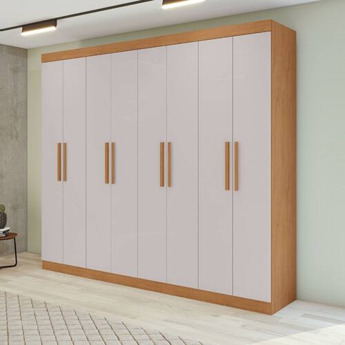 Características: 4 Gavetas 8 Portas 6 Prateleiras Cabideiros em PVC Corrediças telescópicas Costas inteiriças Espaço para sapatos e roupas longas Estrutura em MDP com chapas de 12 e 15mm Gavetas com distanciadores em MDF Maleiro individual Puxadores em MDF