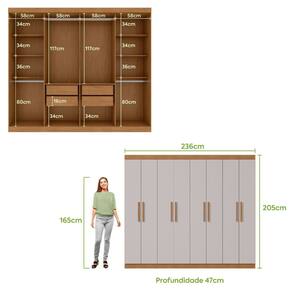 Dimensões: Altura: 205 cm Largura: 236 cm Profundidade: 47 cm Peso: 137,62 kg