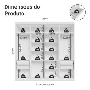Com dobradiças com amortecimento, suas portas fecham de forma suave e silenciosa, garantindo durabilidade e conforto. As gavetas permitem abertura completa, proporcionando fácil acesso a tudo o que você precisa. O amplo maleiro é ideal para armazenar itens maiores, enquanto a possibilidade de ajustar as gavetas e prateleiras oferece total liberdade para personalizar o interior do guarda-roupa.