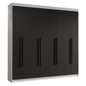Possui uma pintura de alta resistência, que garante durabilidade e um acabamento impecável por muito mais tempo. A estrutura é na coloração Branca, as portas e os puxadores são na coloração preta, criando um visual sofisticado que se adapta a qualquer estilo de decoração. Os puxadores de 80 cm, fabricados em MDF, são um dos grandes diferenciais, trazendo um design alongado e moderno.