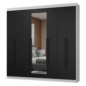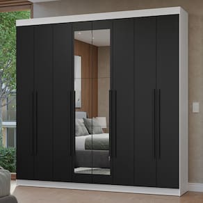 Possui uma pintura de alta resistência, que garante durabilidade e um acabamento impecável por muito mais tempo. A estrutura é na coloração Branca, as portas e puxadores em Preto, criando um visual sofisticado que se adapta a qualquer estilo de decoração. Os puxadores de 80 cm, fabricados em MDF, são um dos grandes diferenciais, trazendo um design alongado e moderno.