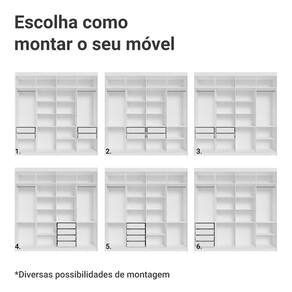 Com dobradiças com amortecimento, suas portas fecham de forma suave e silenciosa, garantindo durabilidade e conforto. As gavetas permitem abertura completa, proporcionando fácil acesso a tudo o que você precisa. O amplo maleiro é ideal para armazenar itens maiores, enquanto a possibilidade de ajustar as gavetas e prateleiras oferece total liberdade para personalizar o interior do guarda-roupa. Além disso, as portas do meio possuem espelho, agregando ainda mais funcionalidade.