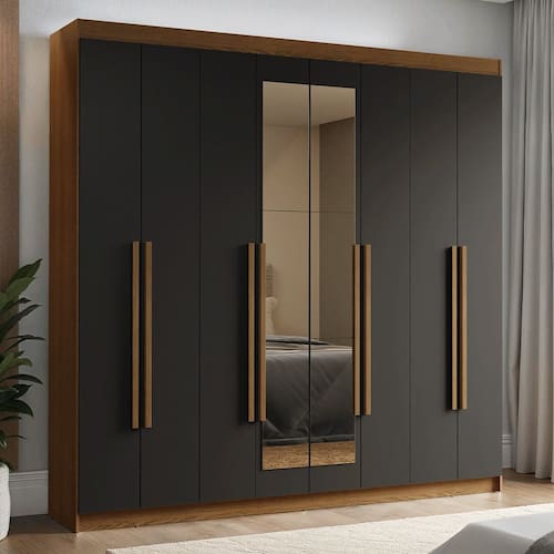 - Um (1) Guarda-Roupa com oito (8) portas batentes, sendo seis (6) de madeira e duas (2) com espelho