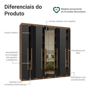 Essa combinação de elementos faz do Guarda-Roupa Venus 8 Portas a escolha ideal para quem busca um móvel funcional, com detalhes que fazem toda a diferença.