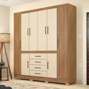 Com 08 portas, 04 gavetas e 04 cabideiros, o modelo oferece uma excelente capacidade de armazenamento, permitindo organizar roupas, calçados e acessórios de forma eficiente. As portas proporcionam acesso fácil e amplo aos compartimentos, ideais para pendurar peças de roupa, como casacos, vestidos e camisas, enquanto as gavetas, equipadas com corrediças metálicas, oferecem praticidade para itens menores, como roupas íntimas, acessórios, lençóis e toalhas.