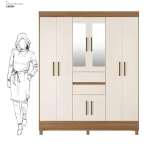 Com oito portas e duas gavetas espaçosas, oferece amplo armazenamento para roupas, acessórios e objetos pessoais.